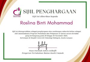 - Contoh aktiviti: Kesedaran bagi tahun 2025 melalui penulisan buku dan keterlibatan dalam seminar.