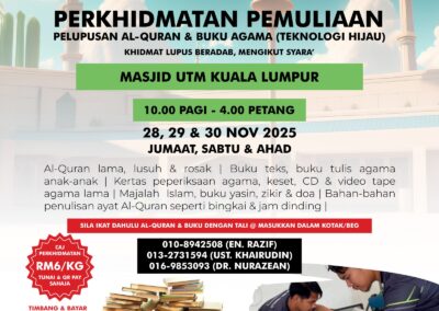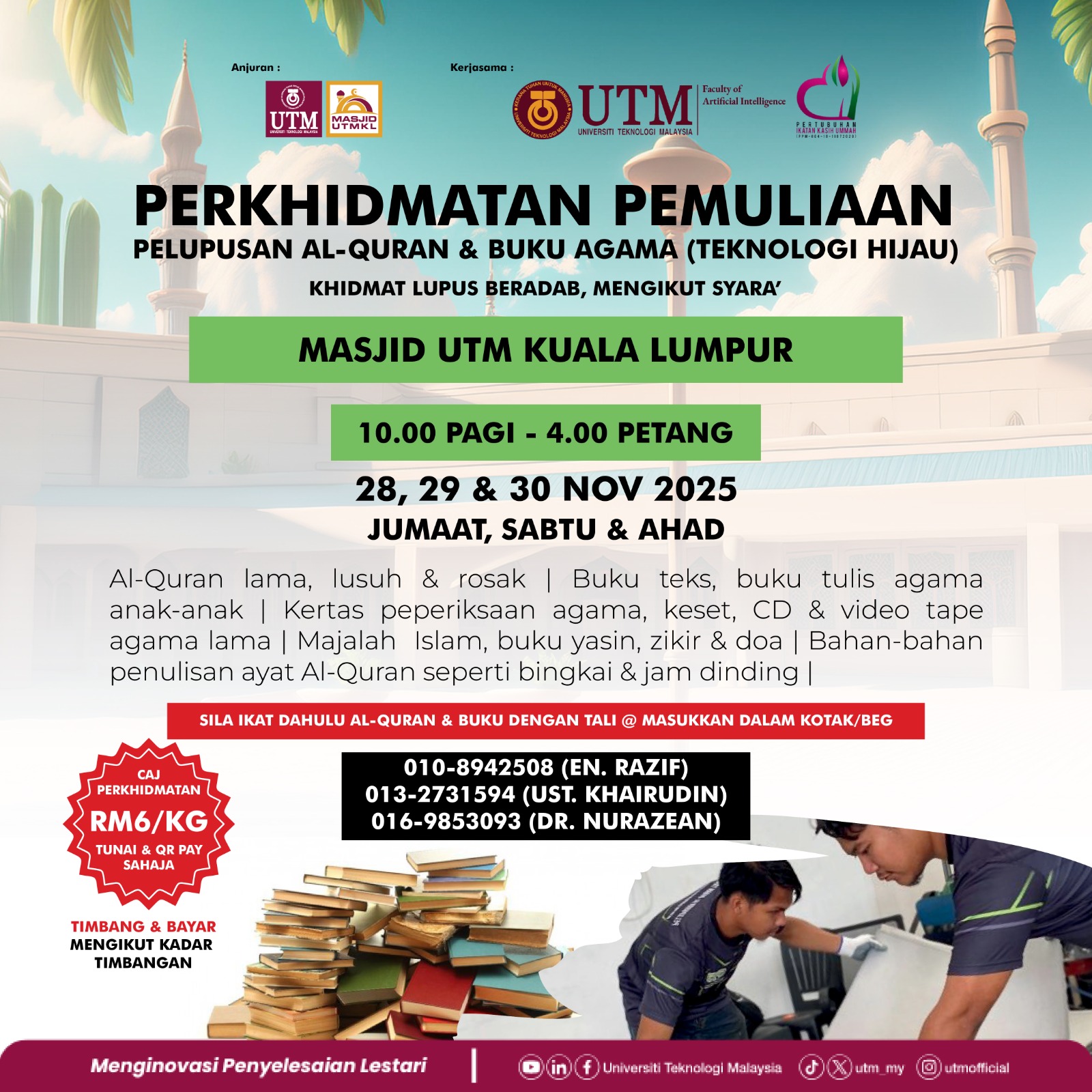 - Penglibatan Staf dan Pelajar FAI dengan program / penyelidikan dan inovasi kelestarian bersenergi NGO Zero Trash, Pertubuhan Ikatan Kasih Ummah dan Zero Waste Malaysia