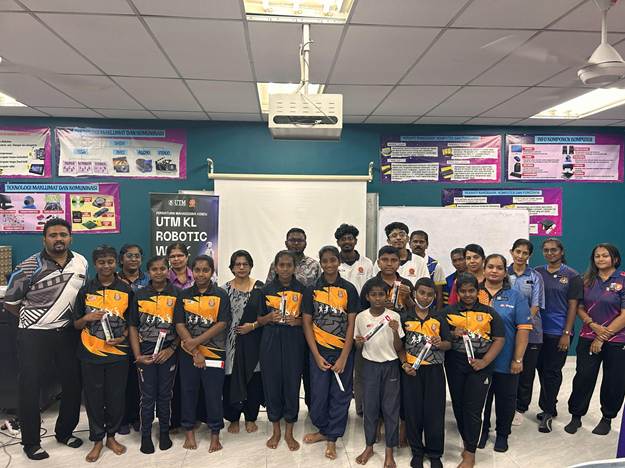 Kuala Lumpur, [7th October 2025] – Universiti Teknologi Malaysia Kuala Lumpur (UTM KL), through its Puthiya Manitha Program, successfully conducted a series of four robotics workshops across four Tamil schools: SJKT Batu Caves, SJKT Bukit Darah, SJKT Telok Datok, and SJKT Kuang. The initiative marked a significant step in bringing robotics and STEM education directly to primary school students, impacting 172 young learners through hands-on activities, teamwork, and innovation. Advisors and facilitators from the Faculty of Artificial Intelligence have been actively involved in this initiative.
